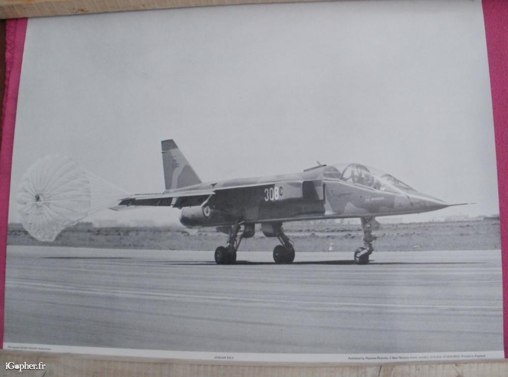 Grand reproduction d'un avion JAGUAR EO/2. Photographie en noir et blanc. Photo british aircraft corporation. Publiée par Plaistow pictorial.