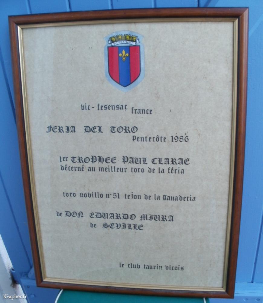 1er trophée : Paul Clarac, décerné au meilleur toro de la feria.