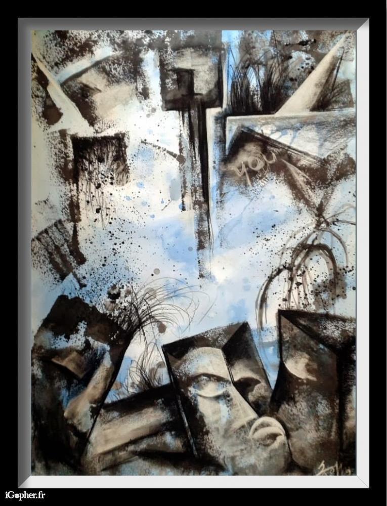 Tableau abstrait moderne contemporain. Collection de tableau Acrylique sur papier canson 50 x70 cm sans cadre.